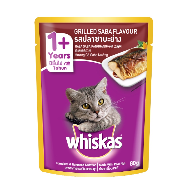 Whiskas Grilled Saba. Whiskas cat food is complete and balanced, specially designed to fulfil your cat’s. Grilled saba dry cat food from whiskas for adult 1+ cats. In a compact single serving shape, whiskas® pouch is made from real fish, gently cooked to perfection to bring out the very best in taste. Delivering to singapore 049145 update location all Whiskas® grilled saba has the perfect mix of salmon and shrimp flavors that your cat won't be able to resist. Your cat won't be able to contain his excitement for the chunks and flakes of real fish prepared in natural juices. Whiskas grilled saba has the perfect mix of salmon and shrimp flavors that your cat won’t be able to resist. Formulated to meet the nutritional requirement of your cat's needs with its unique taste and flavor cats love it. Whiskas pouch grilled saba 80g pack (28 pouches) your cat won't be able to contain his excitement for the chunks and flakes of real.
